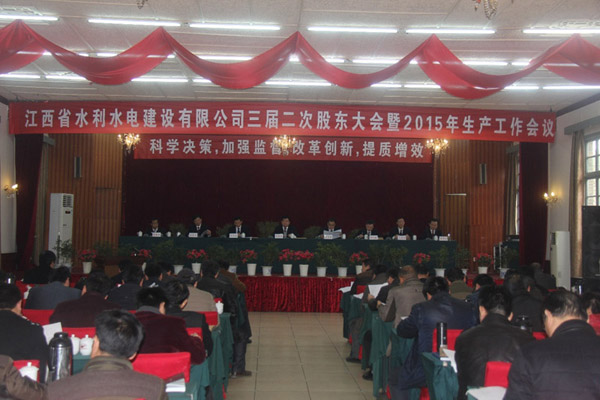 春回大地,萬象更新,正值全國兩會召開之際,江西省水利水電建設有限公司第三屆二次股東大會暨2015年生產工作會議,于3月10日在南昌隆重召開。公司董事、監事、股東、中高層管理人員及員工代表共86名代表會聚一堂,共商公司改革發展大計,描繪企業美好藍圖。