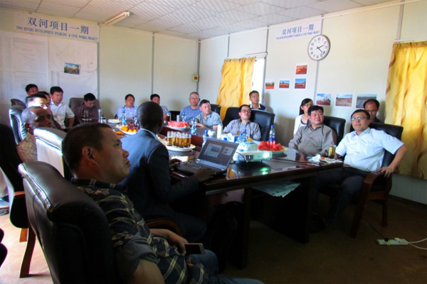 下午2時,在雙河一期會議室聽取了業(yè)主Centum投資集團代表做的題為“投資、發(fā)展、效益”的演講。隨后,中航技肯尼亞分公司副總經(jīng)理吳迪做了補充,詳細(xì)介紹了雙河項目的股權(quán)結(jié)構(gòu),深入分析了雙河項目的投資環(huán)境,并對收益前景做了合理的預(yù)測。董事長王元旦表示對雙河項目充滿信心,相信與中航技的合作能帶來雙贏,希望雙方增強交流,進一步深化投資合作,實現(xiàn)互利共贏、共同發(fā)展的新局面。