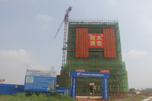 2015年6月12日上午,位于南昌縣千億建筑產業園區的公司總部大樓工程,舉行了隆重儀式,慶祝大樓順利封頂。公司董事長王元旦一行參加了儀式,并走進大樓內部實地察看工程建設情況。