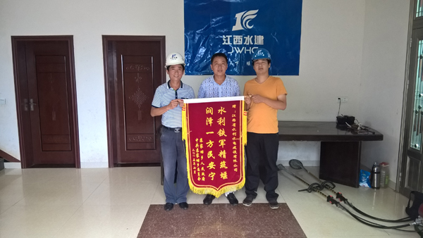集團(tuán)資訊 2015年7月24日,在一陣熱烈的鞭炮聲中,星子縣蘇家垱鄉(xiāng)人民政府丁鄉(xiāng)長等一行,托舉著一面寫有“水利鐵軍精筑堰,潤澤一方民安寧”的錦旗送到了江西水建星子縣蛟塘鎮(zhèn)防洪工程施工項(xiàng)目部。