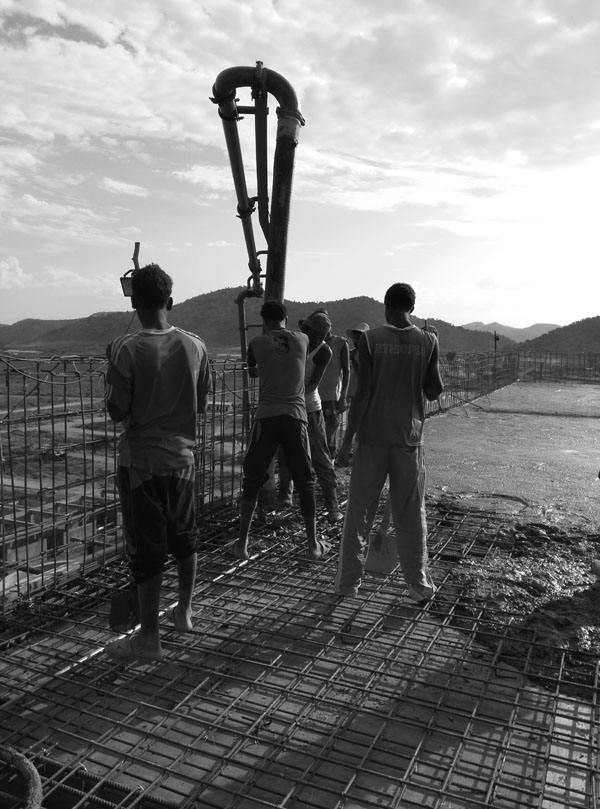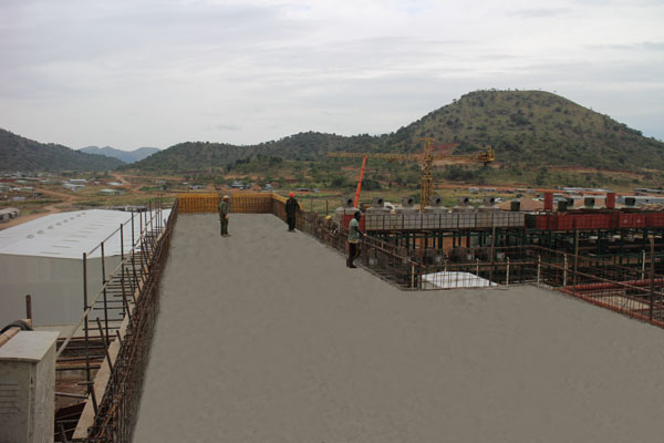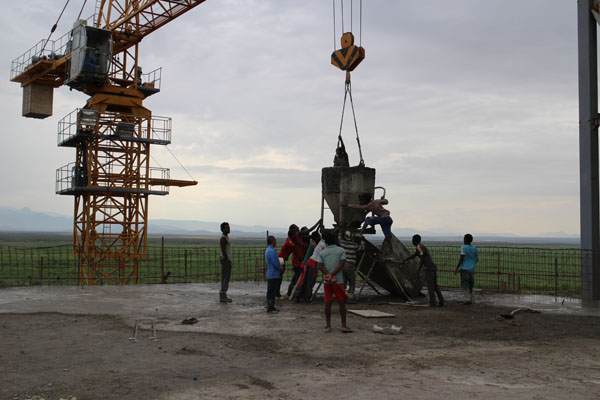 該項目位于接近赤道的埃塞俄比亞南部,素以氣候炎熱而著稱,施工條件頗為艱苦。施工過程中,項目部成員每天早出晚歸,常常一站就是一天,二十四小時連班也是家常便飯。在主廠房接近封頂的關鍵時刻,項目部全體員工有的夜里跟隨混凝土罐車執行押車任務,有的深夜依然堅持在澆搗一線指揮作業,連續奮戰數日,終于完成封頂大任。