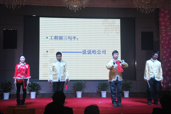 聯(lián)歡會(huì)現(xiàn)場(chǎng)喜氣洋洋,洋溢著新春的喜慶。董事長(zhǎng)兼總經(jīng)理王元旦宣讀了2013年度優(yōu)秀表彰決定,并與公司領(lǐng)導(dǎo)班子一起,為海外公司等10個(gè)優(yōu)秀團(tuán)隊(duì)、黃鄭民等18位優(yōu)秀管理者和劉愚等21位優(yōu)秀員工進(jìn)行頒獎(jiǎng)。王總表示,希望受到表彰的先進(jìn)集體和先進(jìn)個(gè)人倍加珍惜榮譽(yù),戒驕戒躁、再接再厲,以更加開(kāi)闊的眼界、更加務(wù)實(shí)的精神和更加昂揚(yáng)的斗志再創(chuàng)佳績(jī);希望全司員工向先進(jìn)學(xué)習(xí),以先進(jìn)為榜樣,認(rèn)真學(xué)習(xí)貫徹黨的十八屆三中全會(huì)精神,勤奮工作、開(kāi)拓創(chuàng)新,推動(dòng)公司更好更快地發(fā)展,為全面實(shí)現(xiàn)“公司強(qiáng),員工富”的目標(biāo)而努力奮斗!
