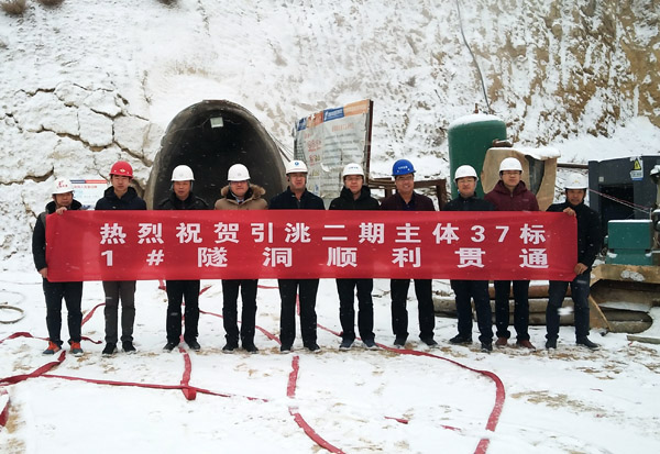 期間,徐洪良總經(jīng)理一行與業(yè)主、設計、試驗檢測、監(jiān)理等單位的領導頂著鵝毛大雪,參加了37標1#隧洞貫通儀式。